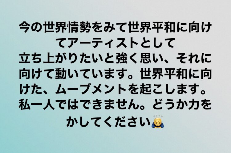 皆様一人一人の力が合わされば世界は平和に近づくと存じます。