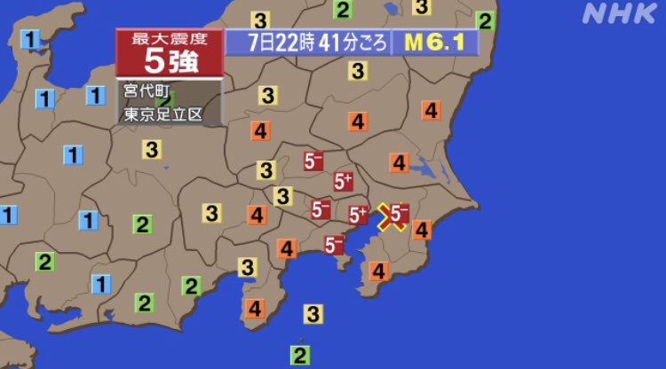 東京も震度5あったみたい。だからめちゃ揺れていたのか。上京して初めてこんな強い地震。。 https://t.co/1RD63NeOxv